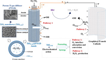 •阳极TiO 2催化剂可促进阴极H 2 O 2的产生和O 3 / H 2 O 2的反应。