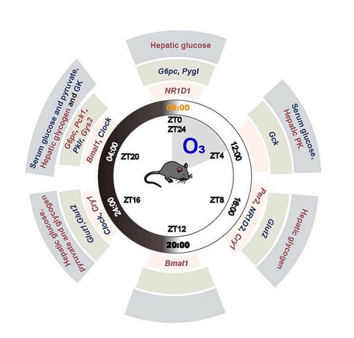本研究的目的是:(1)研究O3是否会引起小鼠肝脏损伤或葡萄糖代谢变化,(2)确定O3是否会引起小鼠肝脏昼夜节律的改变,(3)进一步阐明O3诱导的葡萄糖代谢变化与昼夜节律的关系。